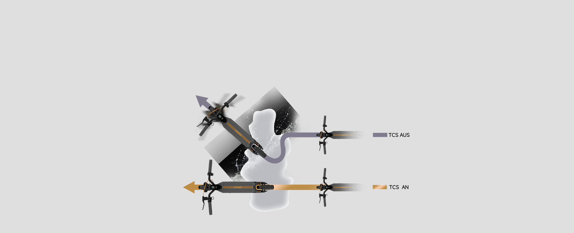 The spacious deck provides a stable ride with a spacious footwell, complemented by high ground clearance that handles uneven terrain with ease. This combination ensures a smooth ride over difficult surfaces.